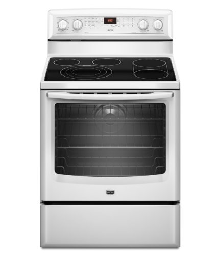 Maytag MER8880AW 30 inch Freestanding White Electric Electric Range featuring 5 Radiant Elements, 6.2 cu. ft. True Convection Oven, Power Preheat, Precise Cooking System, Self-Clean Technology, and Storage Drawer
