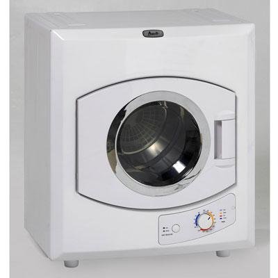 Avanti Auto Clothes Dryer with moisture sensor & control. 115 volt Electric Dryer in White... Lightweight for easy portability, Stainless steel drum, Multiple Time/Temperature settings (high/low heat, Air Dry, Anti-wrinkle), See-thru window, Multiple installation options, 9 lbs. drying capacity, 23.5''W x 27.5''H x 17.5''D, 44 lbs.